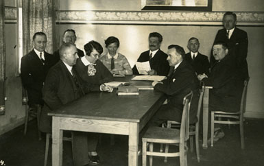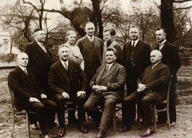 Personen von links: Heinrich Tiedgen, Hauptlehrer